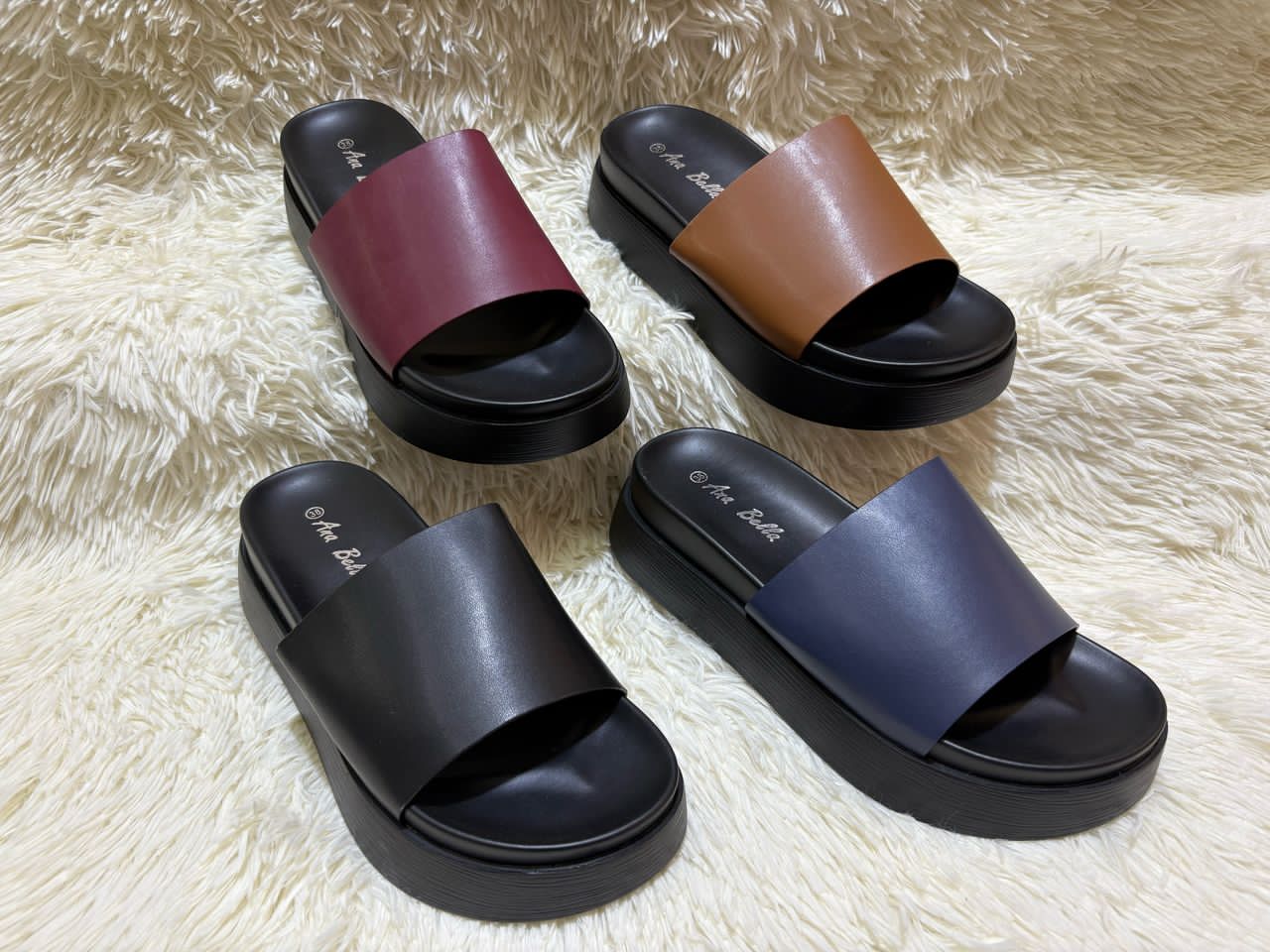 Cette collection réunit des sandales à brides croisées et des mules à bride unique, disponibles en noir, bleu marine, bordeaux et cognac. Empeigne lisse avec une plateforme/talon léger pour un confort tout au long de la journée. Parfaites pour le quotidien chic, les sorties décontractées ou les occasions estivales, elles s’associent facilement avec robes, jupes, shorts ou jeans.